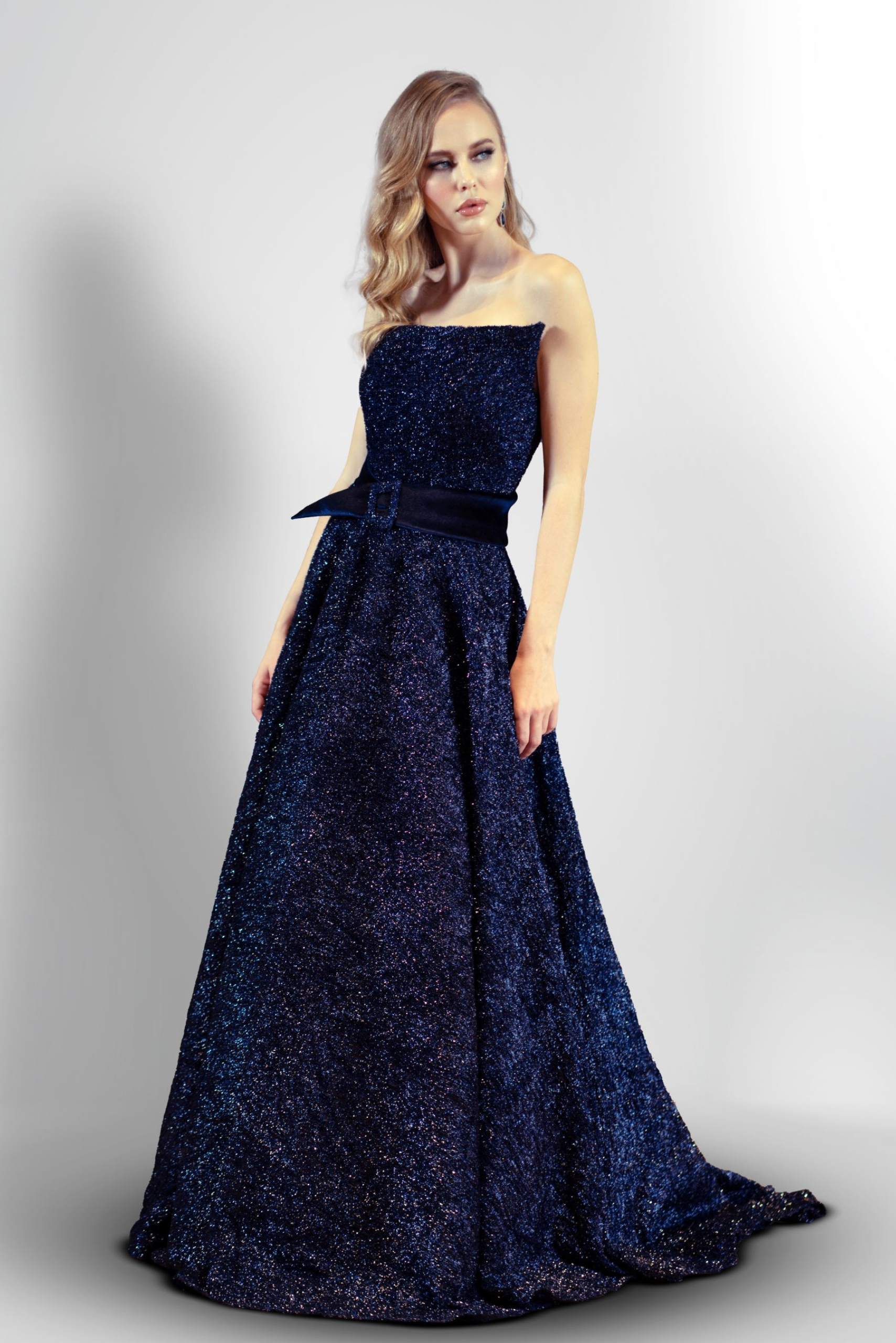 Make a statement in a custom Asymetric Flocking Gown crafted in Abu Dhabi. Schedule your fitting now and bring your fashion vision to life with expert care.