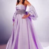 The Butterfly Gown captures ethereal beauty with a dramatic, sculpted silhouette. Featuring a body-hugging corset that defines and elevates the figure, this gown flares into soft, wing-like drapes that evoke the delicate movement of a butterfly in flight. The shimmery organza fabric glows with subtle radiance, creating a mesmerizing play of light and texture with every step.