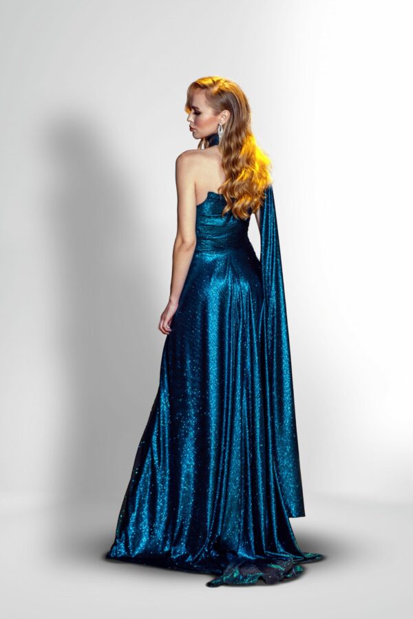 Step into elegance with a Mettalic Flowy Gown designed by a top fashion designer in Abu Dhabi. Book your consultation today and bring your dream dress to life.