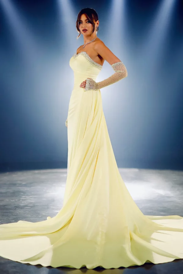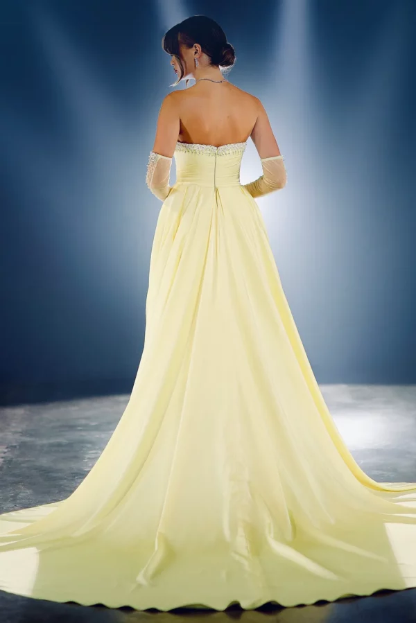 Stand out in a stunning Pearl Beaded Gown with Overskirt tailored by an expert fashion designer in Abu Dhabi. Contact us today to start your couture journey.
